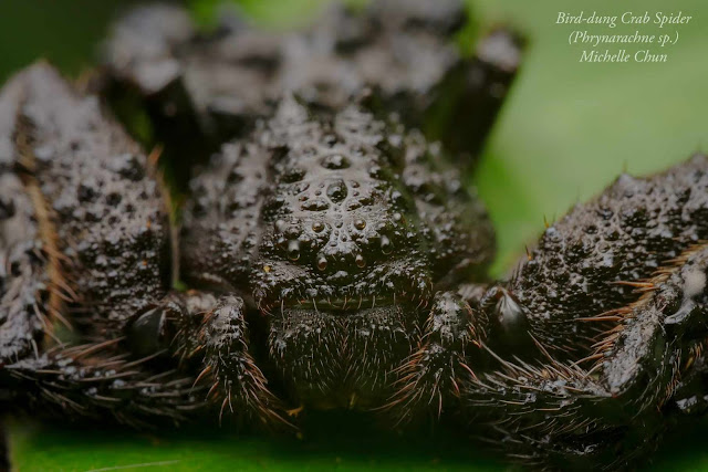 2. Phrynarachne sp. (Bird-dung Crab Spider) - Suspected to be the male of the above (yet to confirm). No smell was detected while photographing this guy. Its full black makes it look like shit but not a real shit.
